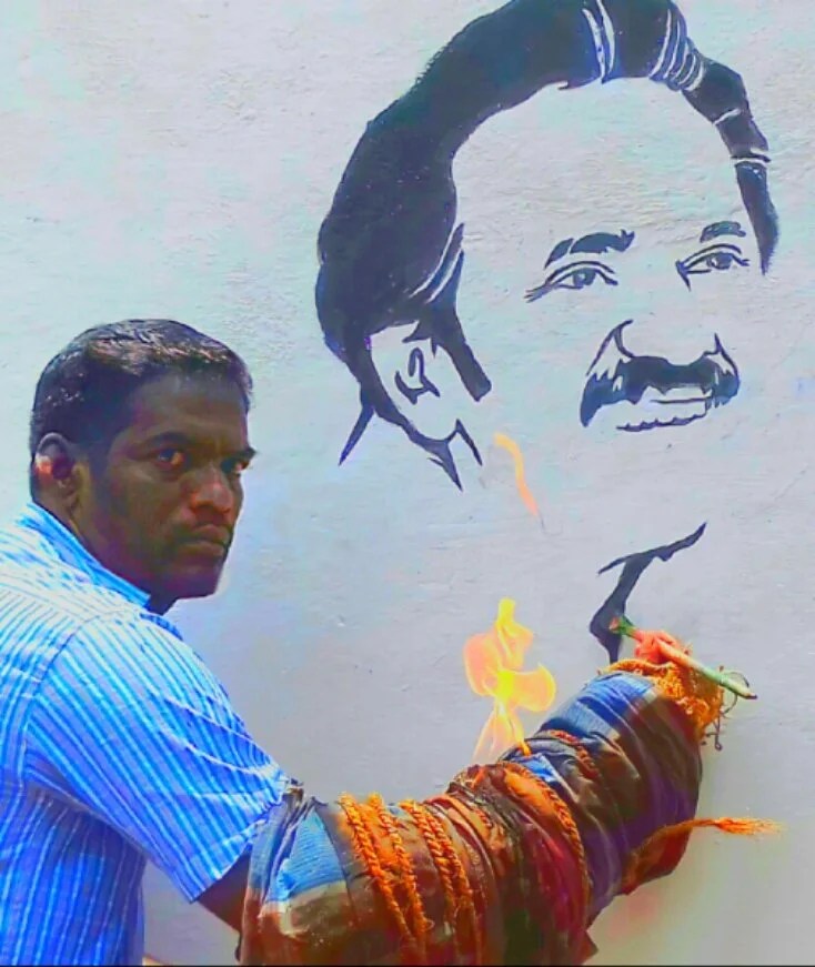கள்ளக்குறிச்சி மாவட்டம் திருக்கோவிலூர் அடுத்த சிவனார்தாங்கல் அரசு நடுநிலைப்பள்ளியில் பகுதிநேர ஓவிய ஆசிரியராக பணிபுரியும் மணலூர்பேட்டை சேர்ந்த சு.செல்வம் அவர்கள் பகுதிநேர ஆசிரியர்களை பணிநிரந்தரம் செய்ய வேண்டி தன்கையில் துணிகளை சுற்றிக்கொண்டு அதன்மேல் தீ வைத்துக் கொண்டு தமிழக முதல்வர் ஸ்டாலின் படம் வரைந்தார். அப்பகுதி பொதுமக்கள் மற்றும் பகுதிநேர ஆசிரியர்கள் ஓவிய ஆசிரியர் செல்வம் அவர்களுக்கு பாராட்டு தெரிவித்தனர்