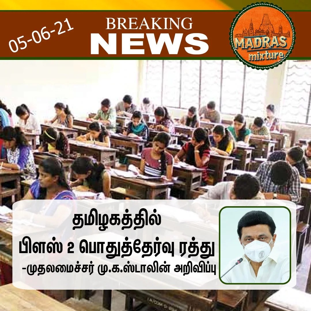 தமிழகத்தில் பிளஸ்2 பொதுத்தேர்வு ரத்து -முதலமைச்சர் மு.க.ஸ்டாலின் அறிவிப்பு